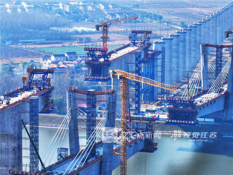 11月28日,扶植者们锚定节点方针,抢赶工期,力争早日实现桥梁贯通。新华日报·交汇点记者 赵亚玲 摄。