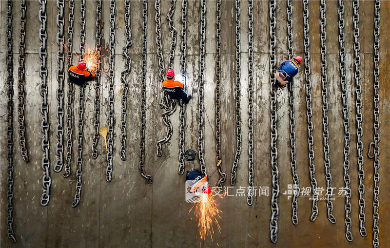 11月21日,宿迁市苏宿工业园区的中运海洋配备(江苏)股份无限公司车间一派忙碌,工人正在赶制出口海外的“订单锚链”。王力 摄 视觉江苏网供图。