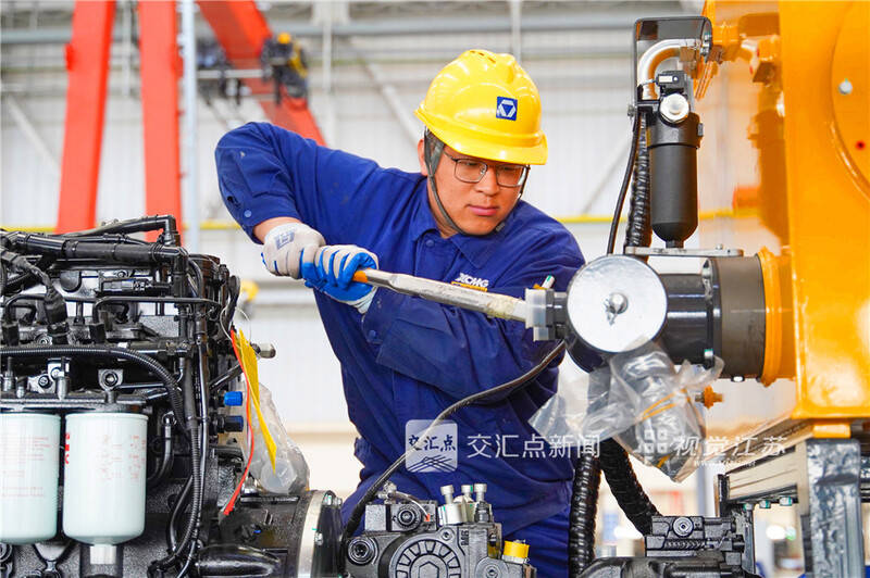 12月10日,正在徐州市贾汪区青山泉镇徐工根本工程机械智能制制出产车间,工人正正在拆卸设备。刘冰 摄 视觉江苏网供图。