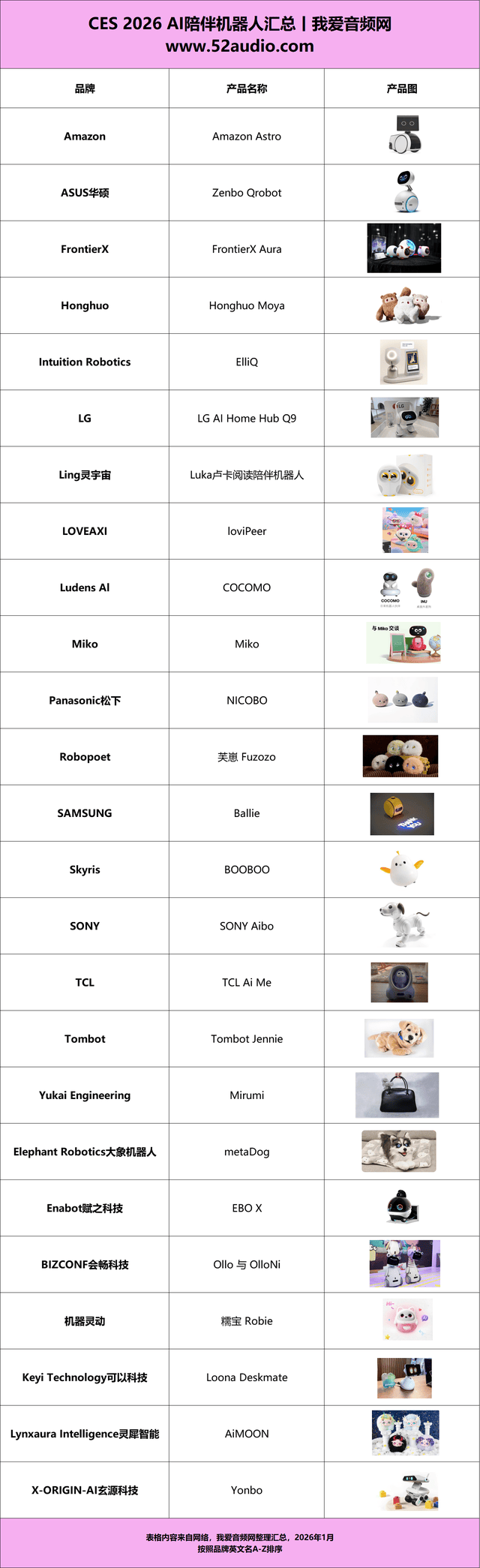 此篇文章,我爱音频网按照市场报道,汇总拾掇了 CES 2026 展上表态的 25 大品牌旗下陪同机械人产物,以及他们的细致功能特点,带大师一路看看目前陪同机械人的最新动态。此前我爱音频网还分享了CES 2026 AI智能眼镜~