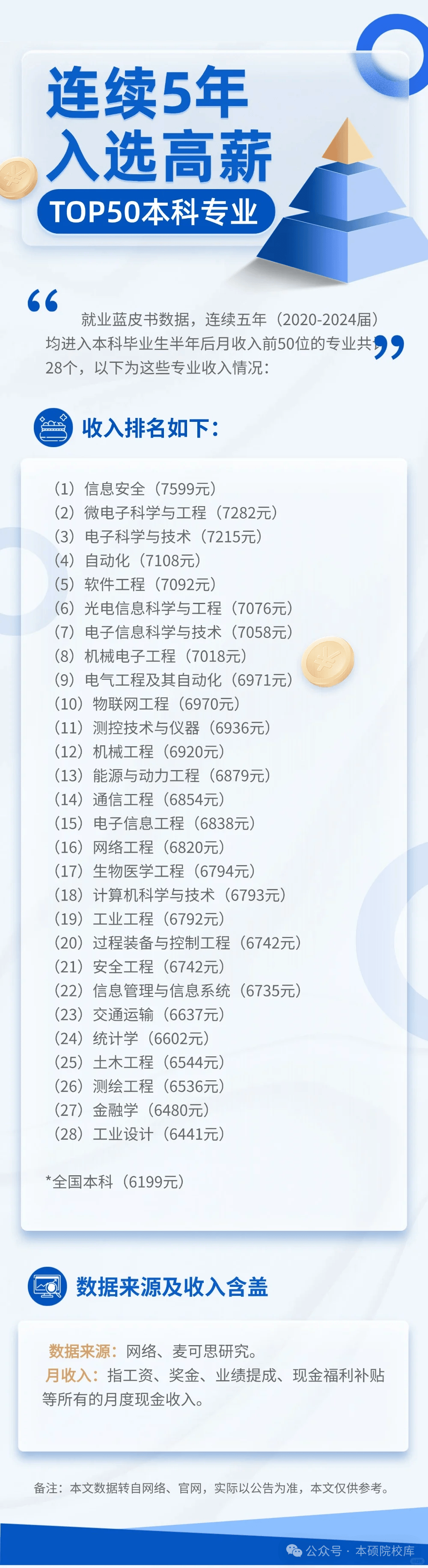 比来麦可思研究发布的就业蓝皮书,给了大师一个 “稳准狠” 的参考:2020-2024 届本科结业生中,有 28 个专业持续五年跻身半年后月收入前 50 位!最低月薪都比全国本科平均(6199 元)高 242 元,最高的间接冲到 7599 元,这波 “长红专业” 实的抗打!纠结转专业的大学生,仍是替娃费心的家长,这份榜单都值得珍藏 —— 终究能持续五年高薪,申明行业需求稳、手艺壁垒高,不是转眼即逝的风口。