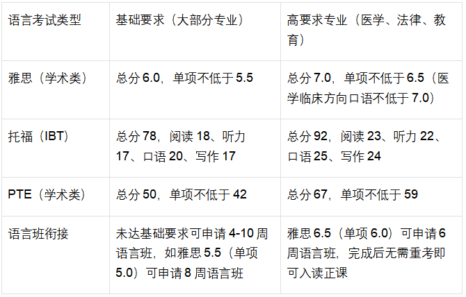2026年邓迪大学硕士申请仍接管雅思、托福、PTE等支流言语测验成就,部门专业因讲授需求,言语要求高于学校根本尺度,具体如下。