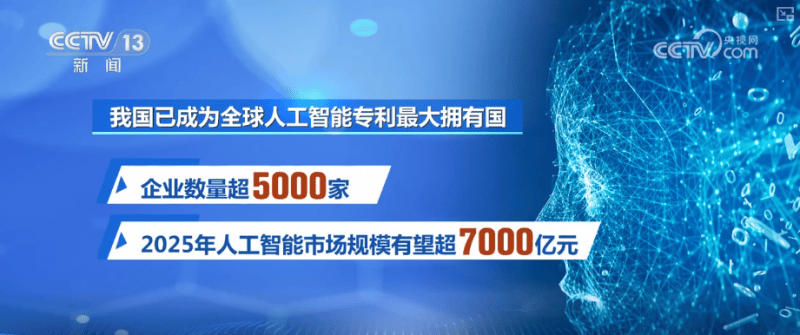 目前,我国已成为全球人工智能专利最大具有国,企业数量超5000家。2025年,人工智能市场规模无望超7000亿元。