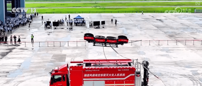 无人机企业手艺保障司理唐海丰引见,这是全球首款采用涵道电动电扇推进手艺设想的高空消防灭火无人机,具有更大的推力,载荷达到400公斤,爬升至百米高空仅需不到1分钟,很益处理了城市高空消防难题。